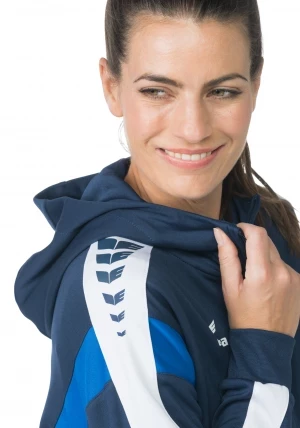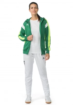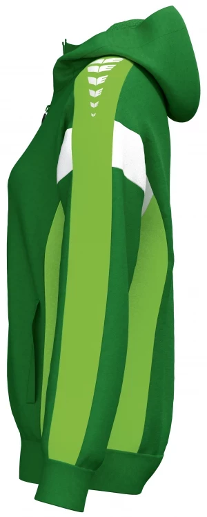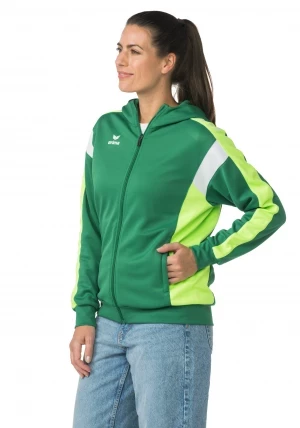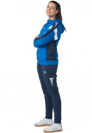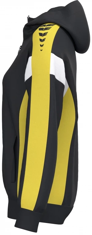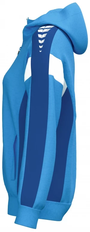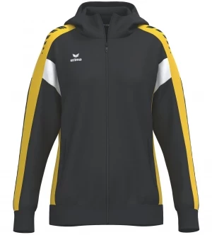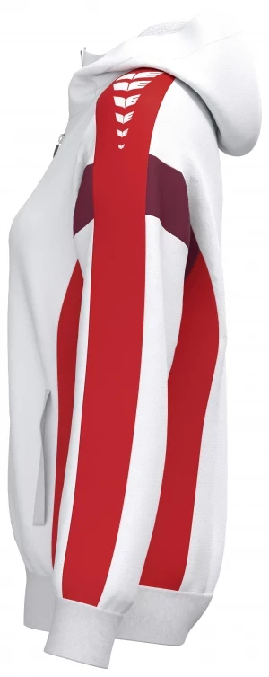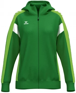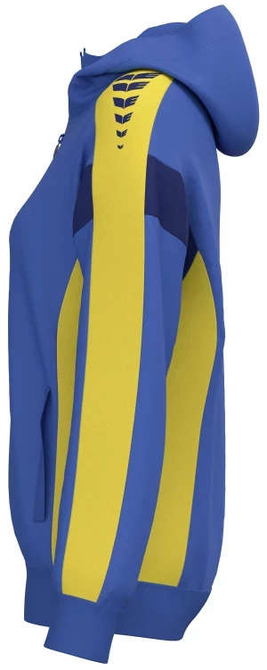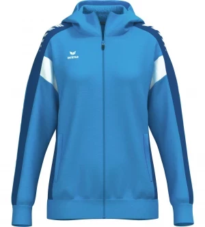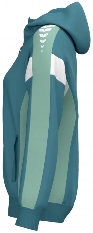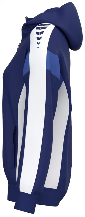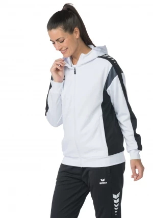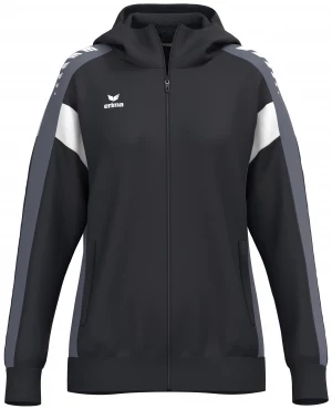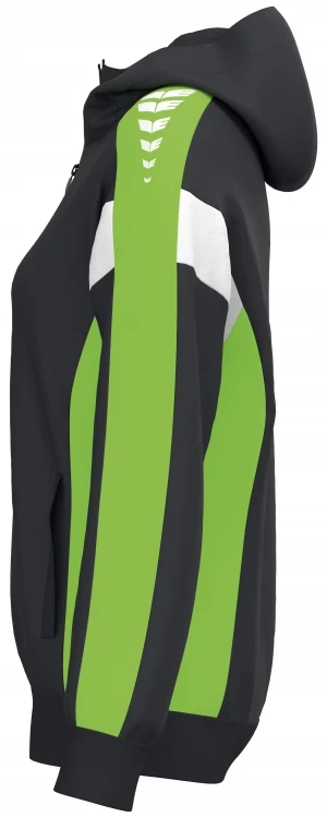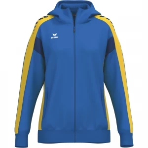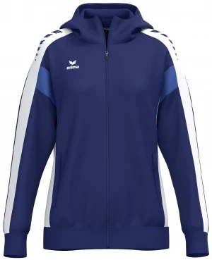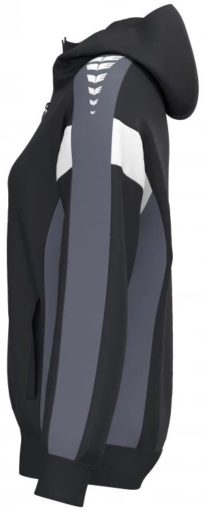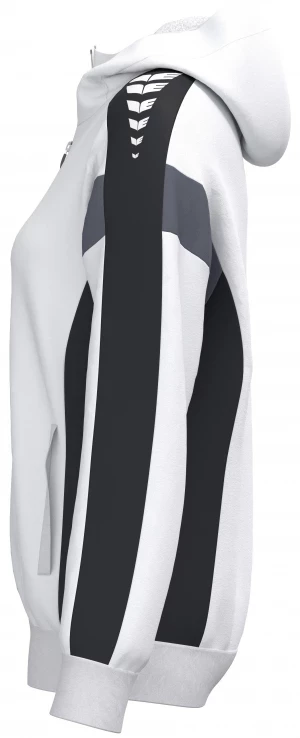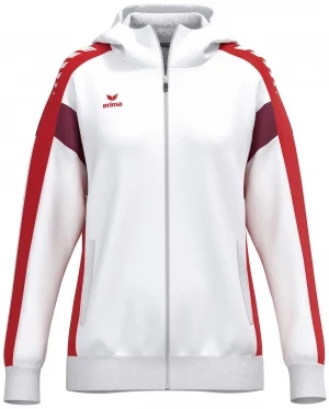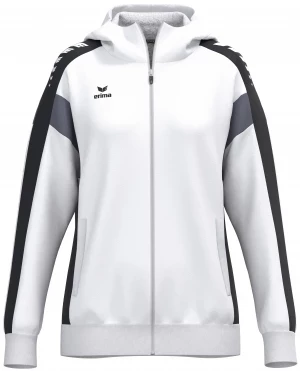 La veste de survêtement avec capuche allie un design moderne et une grande fonctionnalité. L'intérieur en interlock respirant, la capuche doublée et la protection du menton sur la fermeture éclair assurent un confort agréable. La coupe régulière et les épaules recouvertes confèrent à la veste un look décontracté qui est complété par l'imprimé ERIMA Wings très tendance sur les épaules. Les poches latérales zippées sont super pratiques pour ranger tes objets de valeur en toute sécurité.