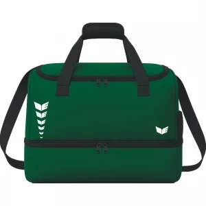 Le sac de sport ERIMA INTRO est ton compagnon polyvalent - pour le sport, le quotidien et tout ce qui se trouve entre les deux. Avec son compartiment séparé dans le fond, tu gardes tes chaussures ou tes vêtements mouillés bien séparés et tu veilles à tout moment à un ordre parfait. La palette de couleurs modernes en noir, new navy, émeraude et new bordeaux confère au sac un look frais et sportif, tandis que les surfaces généreuses pour le logo sont idéales pour les armoiries du club ou les impressions du sponsor. Le matériau résistant le rend solide et durable, tandis que sa légèreté le rend confortable à porter, même lorsqu'il est entièrement chargé. Sur le devant, une poche supplémentaire à fermeture éclair permet de ranger les objets de valeur et les petits accessoires. La bandoulière résistante assure confort et stabilité, même en cas d'utilisation fréquente. Avec trois variantes de taille disponibles (taille S : 35*25*30 cm (env. 26l) ; taille M : 40*30*35 cm (env. 42l) ; taille L : 55*35*40 cm (env. 77l)), le sac de sport ERIMA INTRO s'adapte sans peine à toutes les exigences.