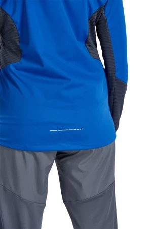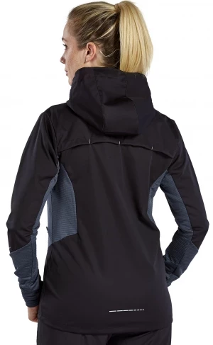 La veste de running est fabriquée dans un matériau fonctionnel très léger et déperlant. Elle est donc le compagnon idéal de ta séance de running par mauvais temps. Grâce à ses propriétés fonctionnelles, tu bénéficies d'une sensation de confort. Ceci est complété par l'ouverture d'aération dans le dos. La veste est équipée de nombreux extras pratiques qui en font un véritable must-have : elle est dotée de poches latérales zippées, d'un col haut avec capuche et d'un trou pour le pouce sur l'ourlet des manches des deux côtés. Les éléments réfléchissants sont également très pratiques pour une meilleure visibilité.