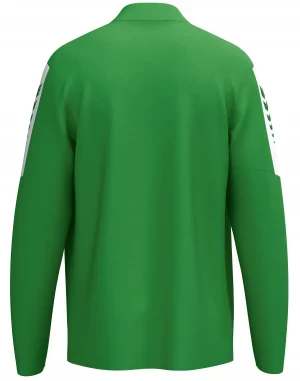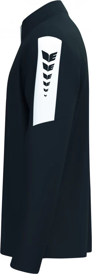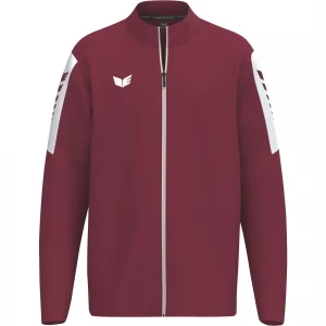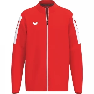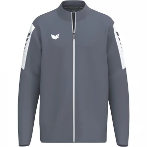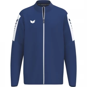 La nouvelle veste de survêtement INTRO séduit par sa matière fonctionnelle résistante en polyester 100 % recyclé, qui accompagne tous les mouvements - que ce soit à l'entraînement, à l'échauffement ou pendant les loisirs. La coupe droite et sportive assure une tenue confortable et un confort fiable. Le design se distingue par un empiècement de couleur contrastée avec l'imprimé ERIMA Wings sur les manches, pour un look dynamique et reconnaissable. L'aile ERIMA brodée sur la poitrine souligne son caractère haut de gamme. Une fermeture à glissière frontale de bout en bout avec protection du menton offre à la fois protection et confort. Les poches latérales à fermeture éclair dissimulées permettent de ranger les objets de valeur en toute sécurité. Le matériau durable n'est pas seulement synonyme de fonctionnalité, mais aussi de conscience écologique. Une veste qui n'est pas seulement belle, mais qui convainc aussi par ses détails - pour le sport, l'équipe et le quotidien.