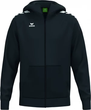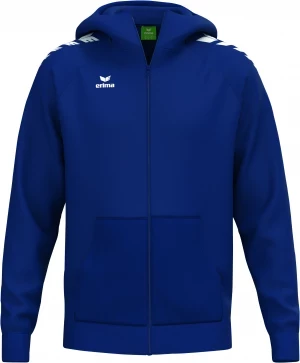 La veste à capuche est polyvalente grâce à son mélange de matériaux résistants. Pour le sport, elle accompagne chaque séance d'entraînement et t'offre suffisamment de liberté de mouvement. De plus, la matière offre un confort super doux grâce à la part de coton. Avec la capuche doublée et les poignets et l'ourlet côtelés, tu es très à l'aise quand tu es chez toi. Tu es ainsi assuré d'un grand confort. Tu peux ranger tes objets de valeur dans la poche kangourou pratique et les avoir ainsi toujours à portée de main. Le sweat-shirt décontracté est complété par l'imprimé ERIMA Wings sur les épaules.