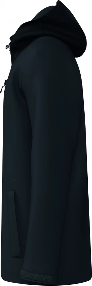 La veste ERIMA PREMIA Hydro offre une protection optimale contre le vent et les intempéries. Faisant partie de la collection exclusive PREMIA, elle allie un design noble à des matériaux de haute qualité. La membrane imperméable et respirante à 2,5 couches, avec une colonne d'eau de 10 000 mm et une respirabilité de 10 000 g/m²/24h, te garde au sec de manière fiable et assure un climat corporel agréable - même en cas de mouvements intenses. Le matériau stretch 4 directions garantit une liberté de mouvement maximale, tandis que les fermetures éclair étanches sur la poitrine et les poches latérales protègent tes ustensiles en toute sécurité. La capuche à double réglage avec cordon de serrage réfléchissant, les ouvertures d'aération avec fermeture éclair sous les bras et les poignets réglables avec fermeture velcro assurent un confort supplémentaire. Le design fonctionnel est complété par le design ERIMA en forme de balancier sur la poitrine - une veste qui allie parfaitement performance et élégance.